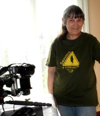 Françoise Peyrissat est volontaire et relais de Lichens GO dans la Métropole de Clermont-Ferrand depuis 2019, elle a contribué à l'évolution du protocole et à la clé d'identification du programme.